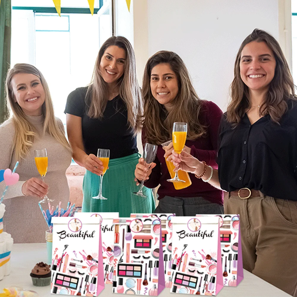 4/8/12pcs Girls Spa Party Candy Bags Women Cosmetic Gift Bags Sweet Pink Princess Birthday Make up Queen Bachelor Party Supplies