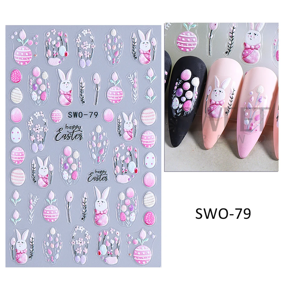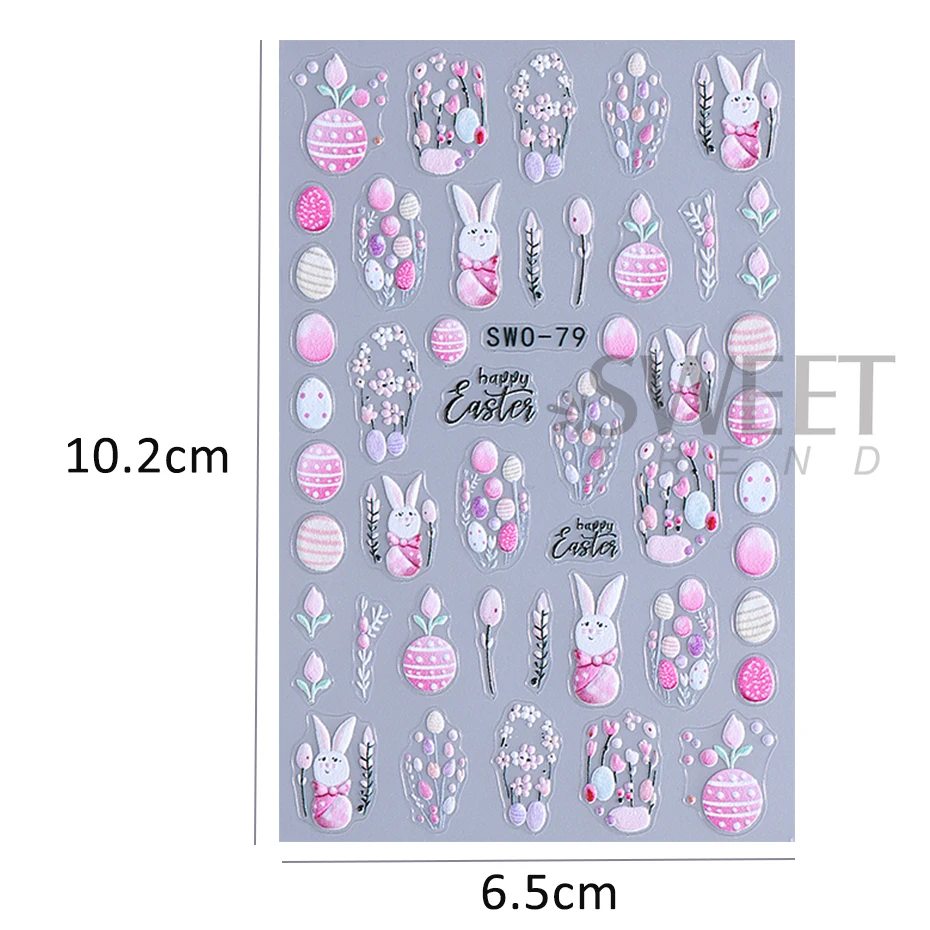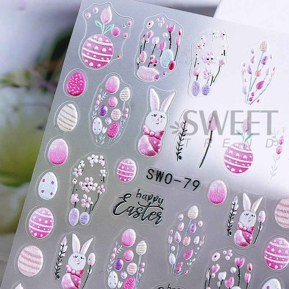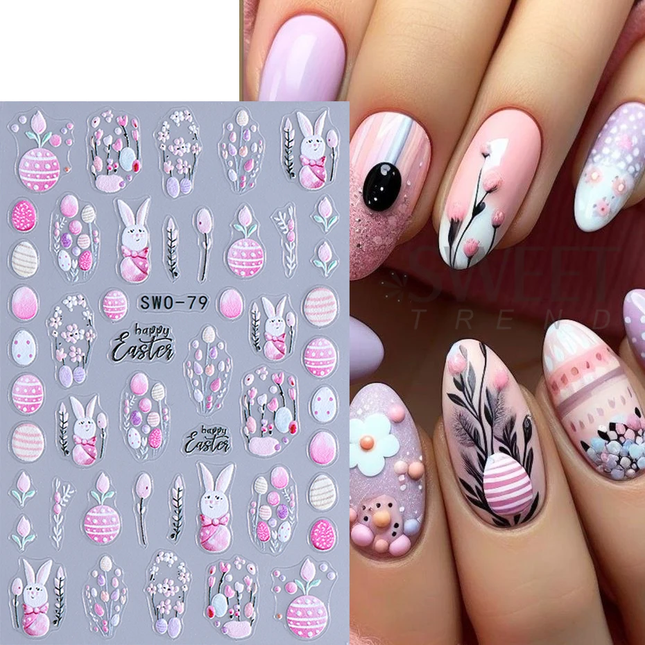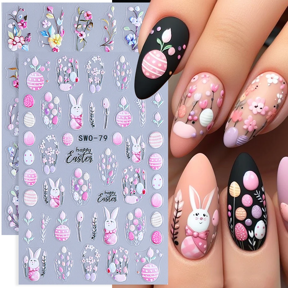 Easter Bunny Nail Art Stickers 3D Cute Cartoon Rabbit Egg Flower Adhesive Slider Decals Spring Flower Manicure Decoration Foils