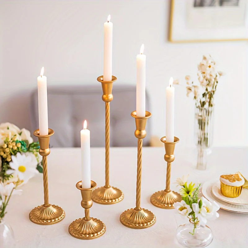 Gold Candlestick Holders Set Of 5, Wedding Birthday Candlelight Dinner Table Centerpiece, Halloween And Christmas Decorations