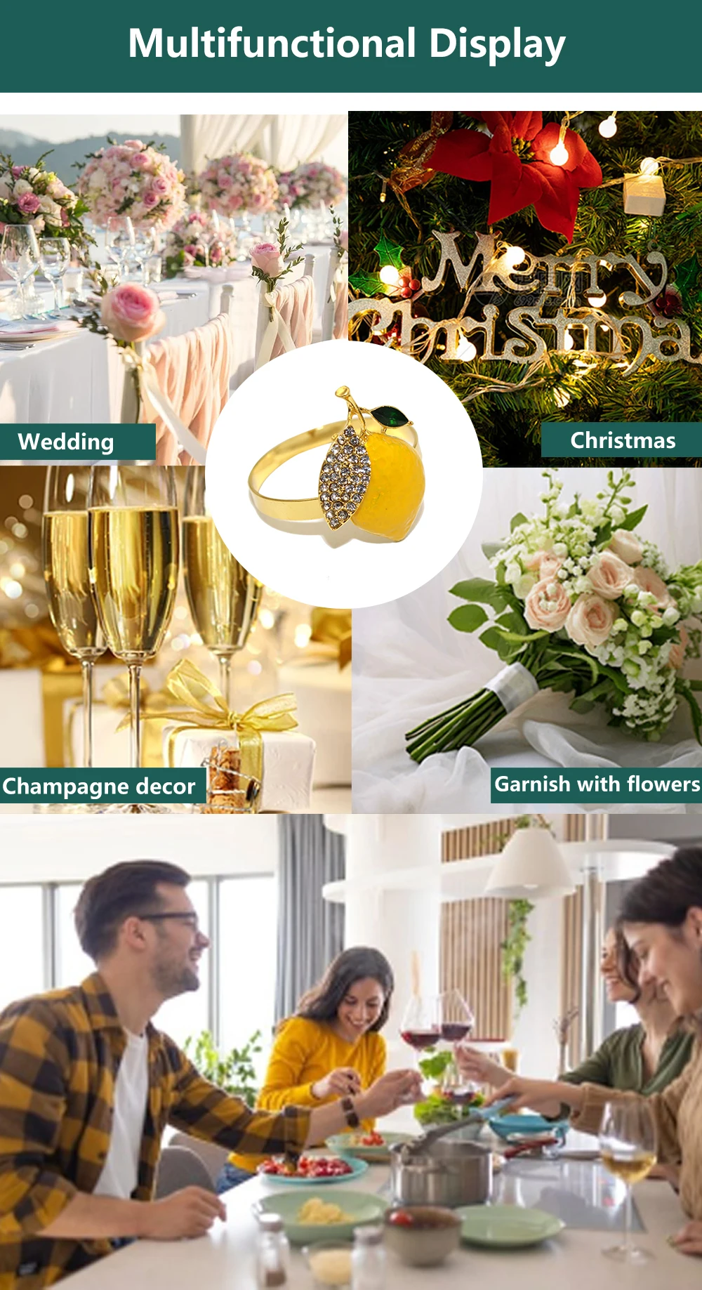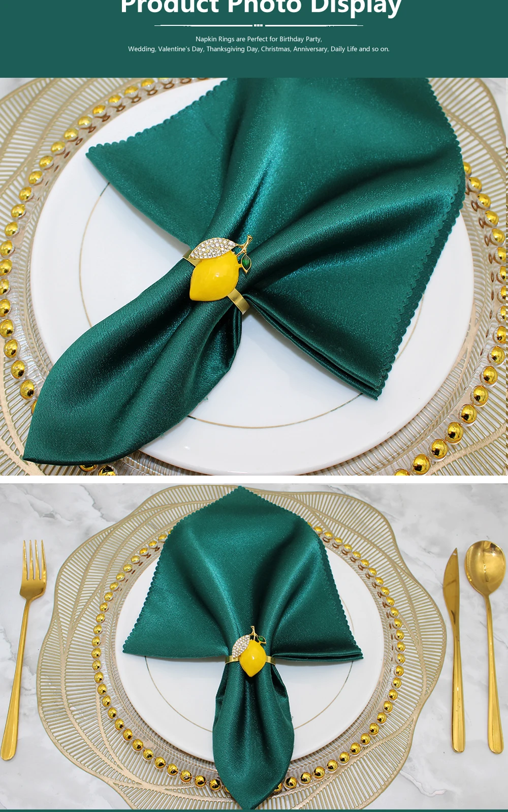 6Pcs Lemon Napkin Rings Metal Fruit Napkin Buckles Rhinetone Napkin Holder for Wedding Birthday Dinner Party Table Decor HB142