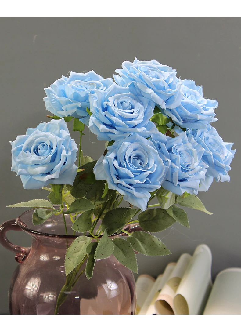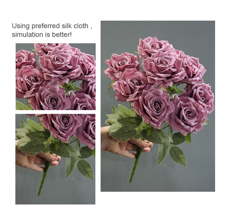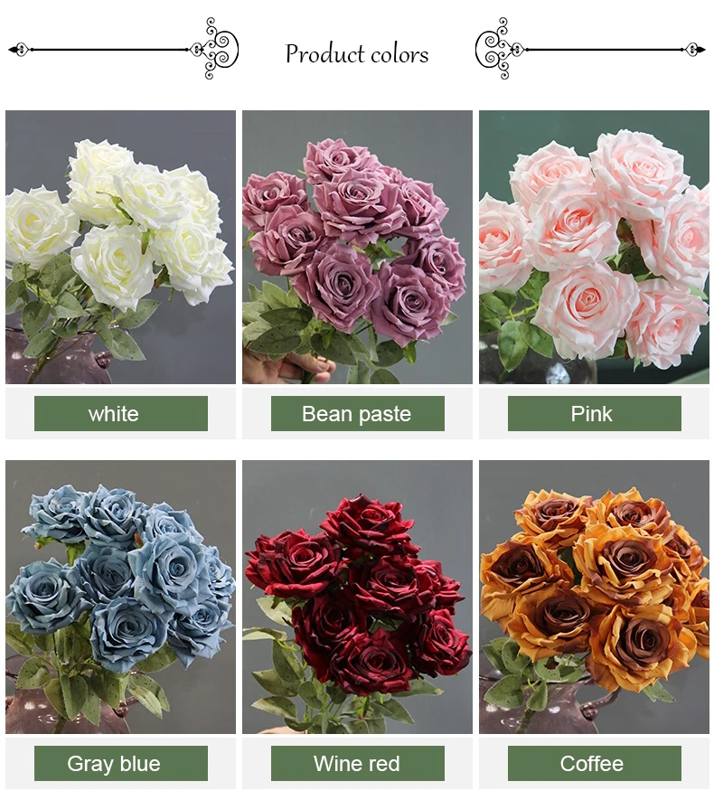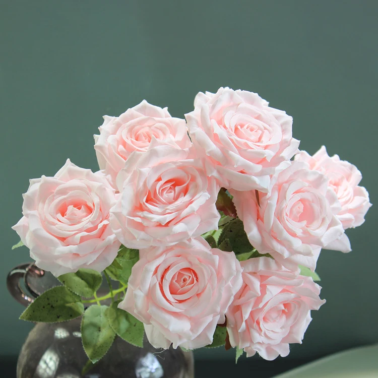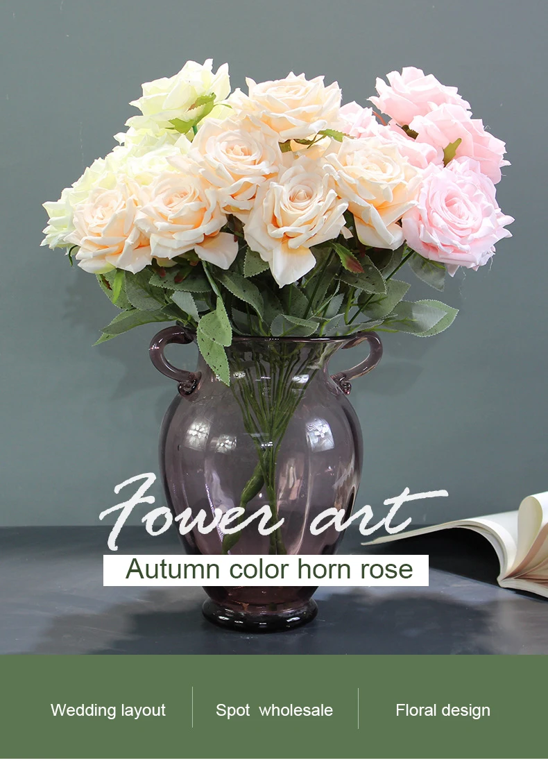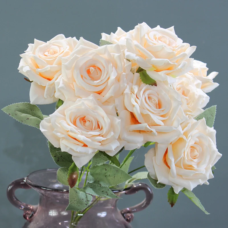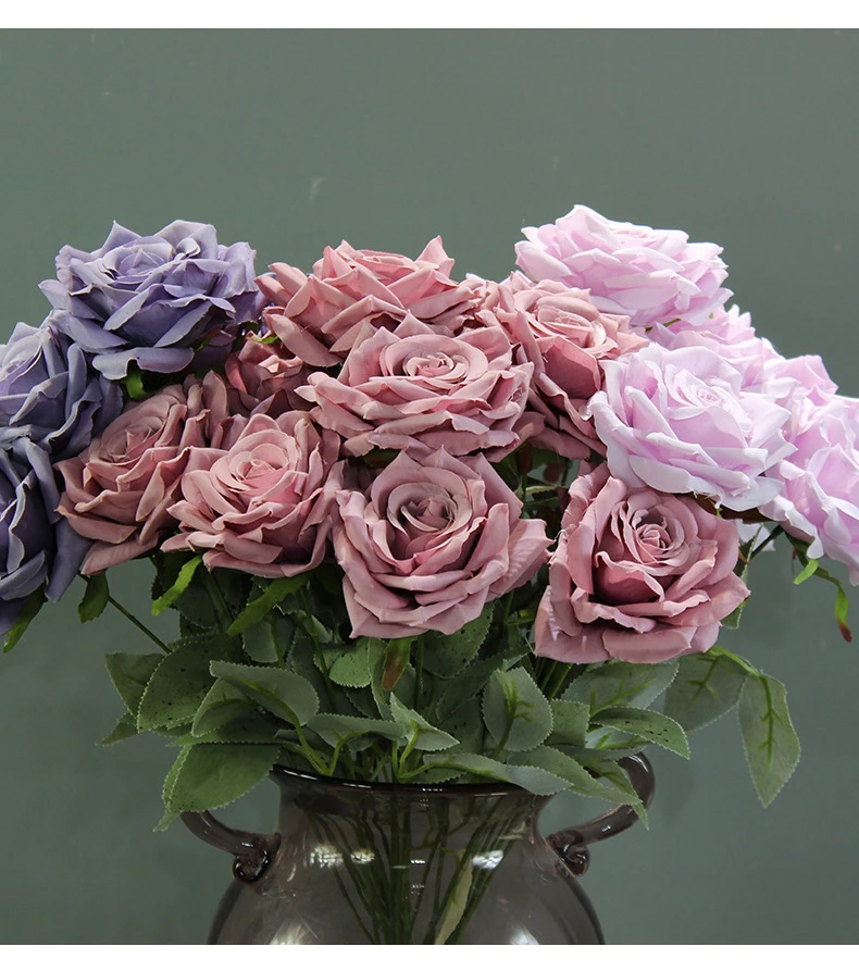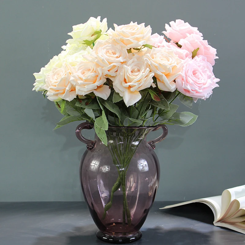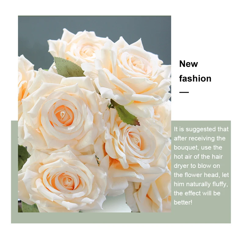 1 Bouquet 9 Heads Artificial Diamond Rose Wedding Table White Pink Rose Bouquet Curled Rose Silk Flower Home Wedding Decoration