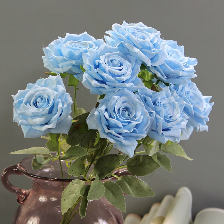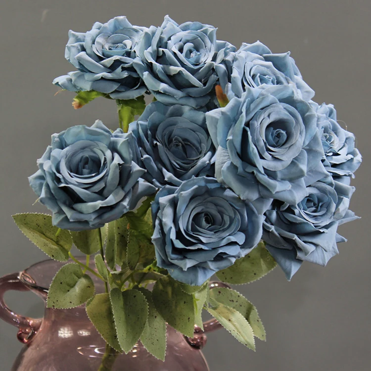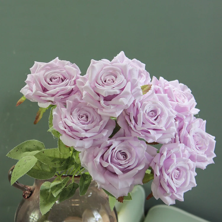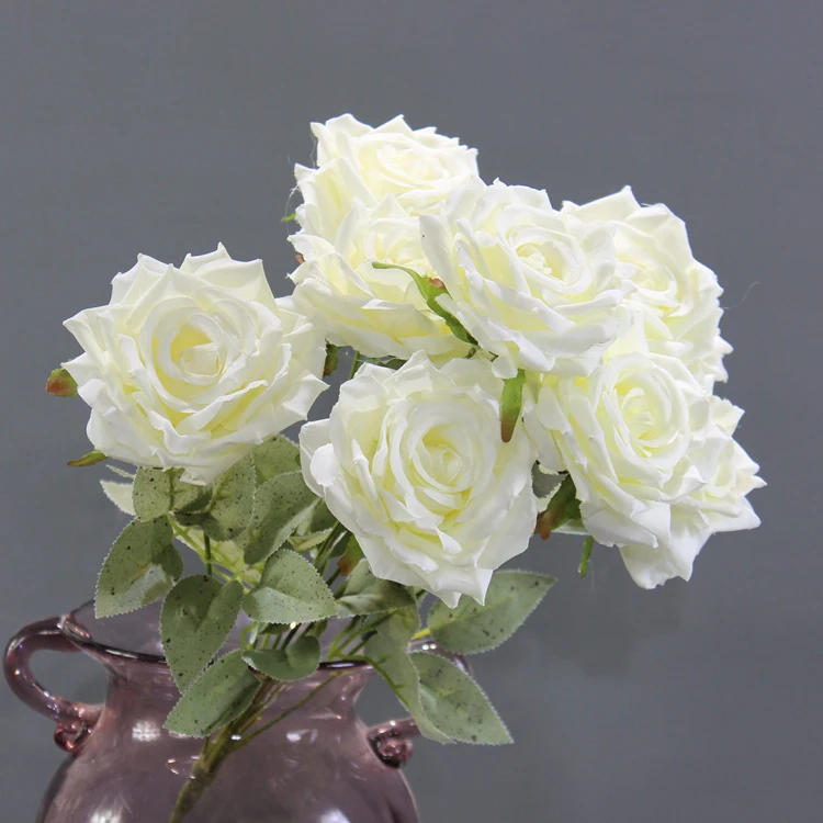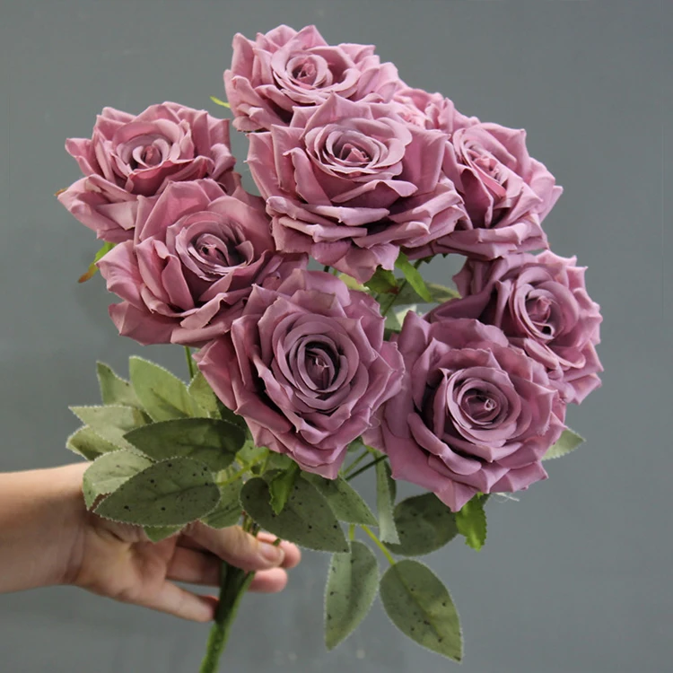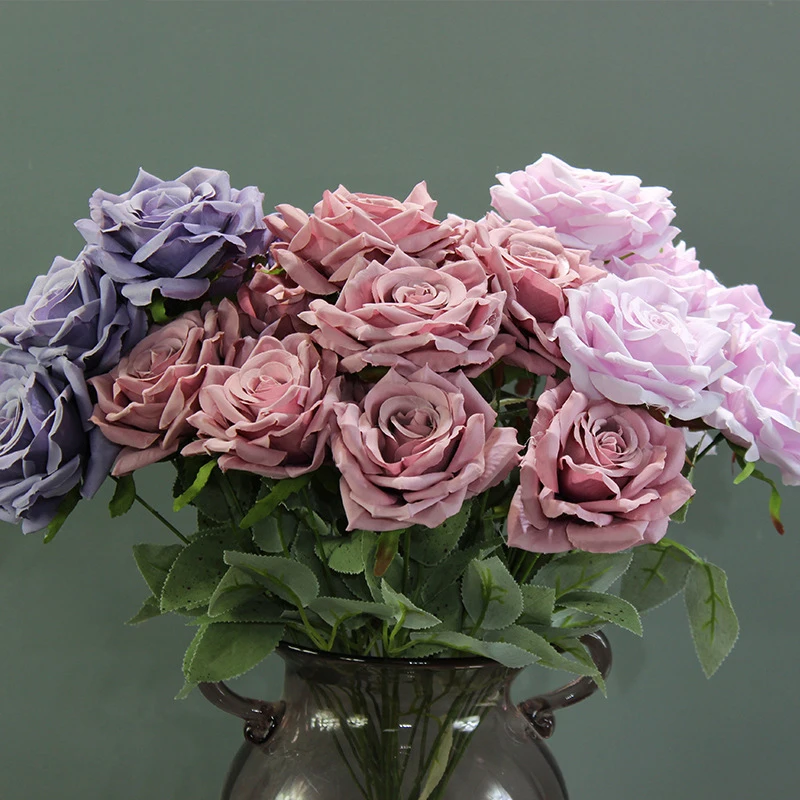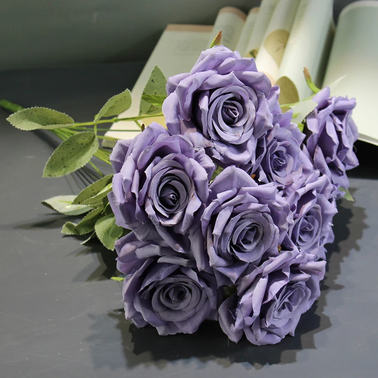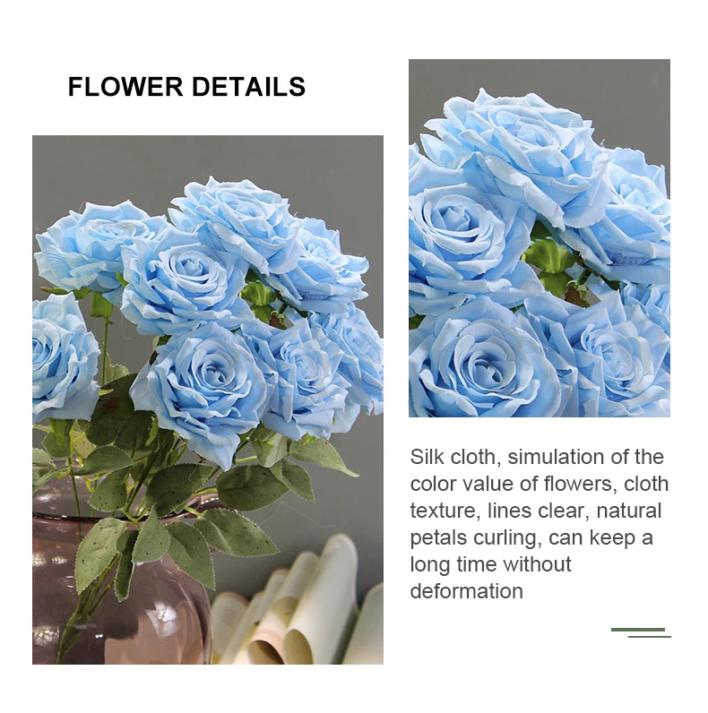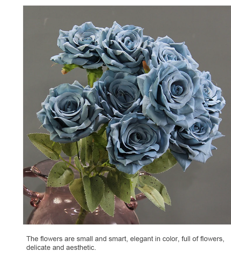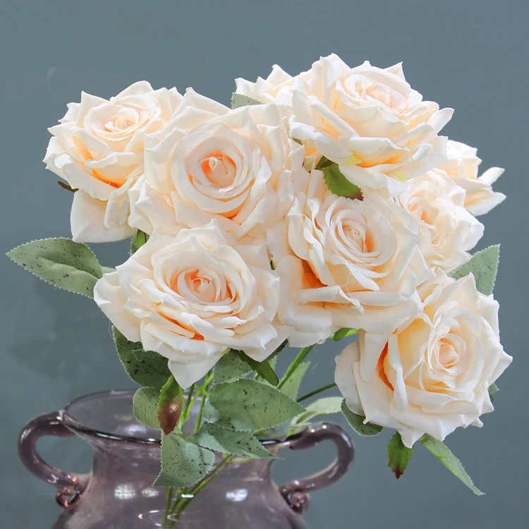 1 Bouquet 9 Heads Artificial Diamond Rose Wedding Table White Pink Rose Bouquet Curled Rose Silk Flower Home Wedding Decoration