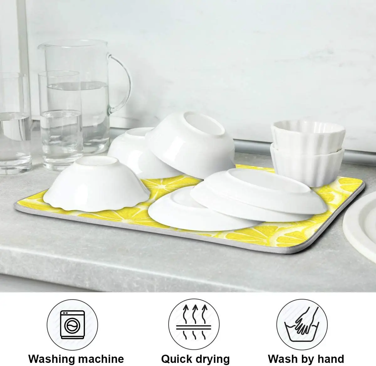 Be the first to review “Yellow Lemon Dish Drying Mat for Kitchen Countertops Sinks Drying Mat Absorbent Heat Resistant Dishes Drainer Pad 18×24 Inch”