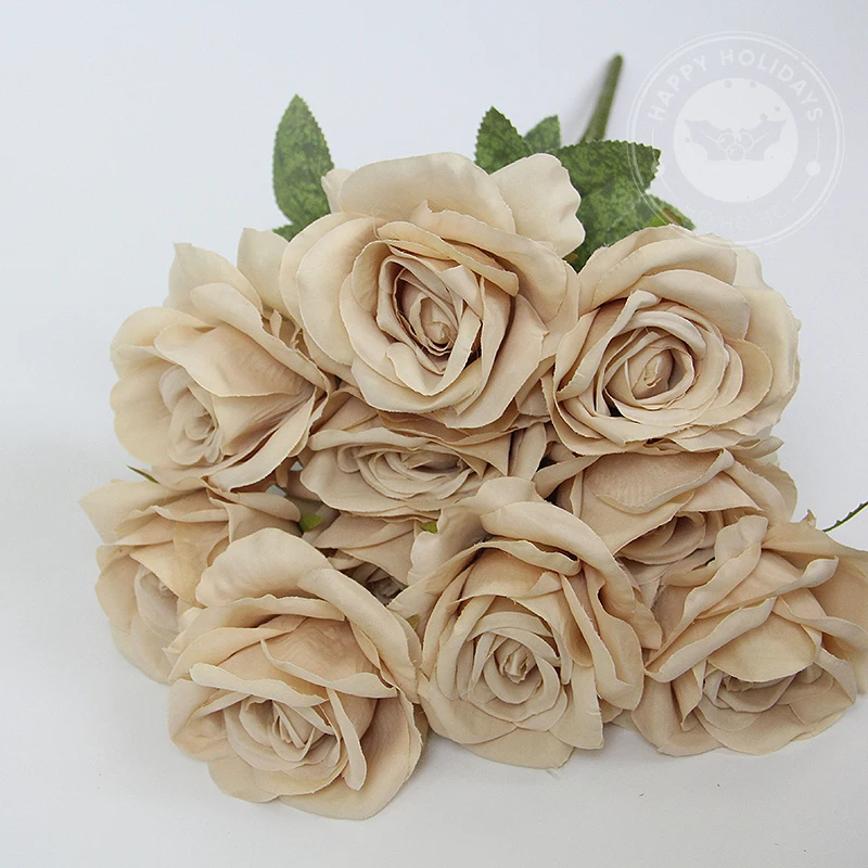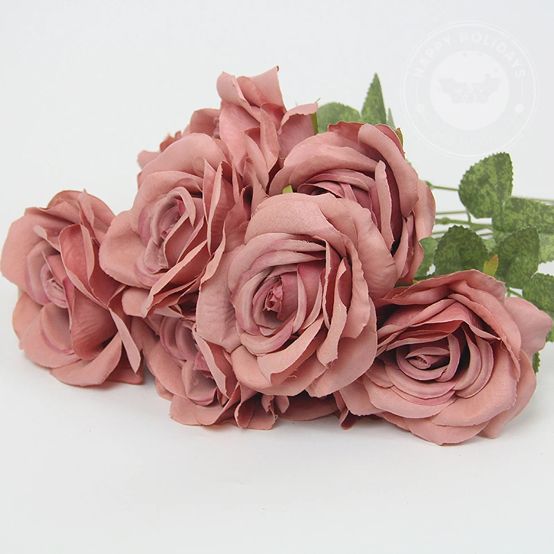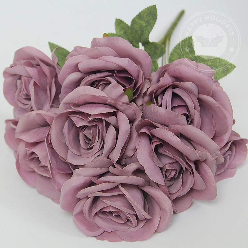 10 Flowers/Bunch Vintage Roses Coffee Bean Paste Purple Grey Pink Silk Bouquet For Birthday Party Wedding Decoration Room Layout
