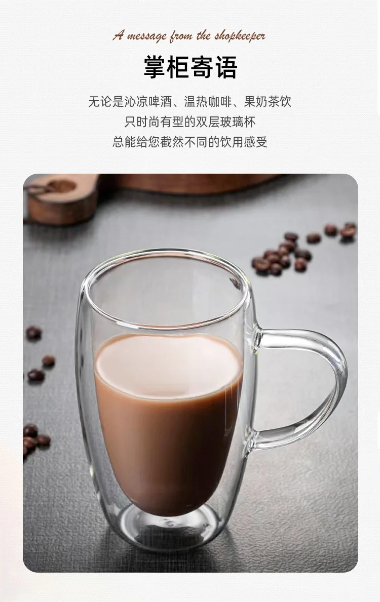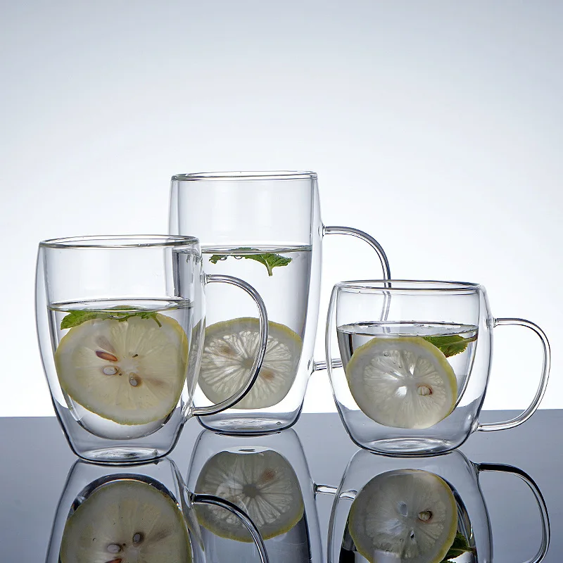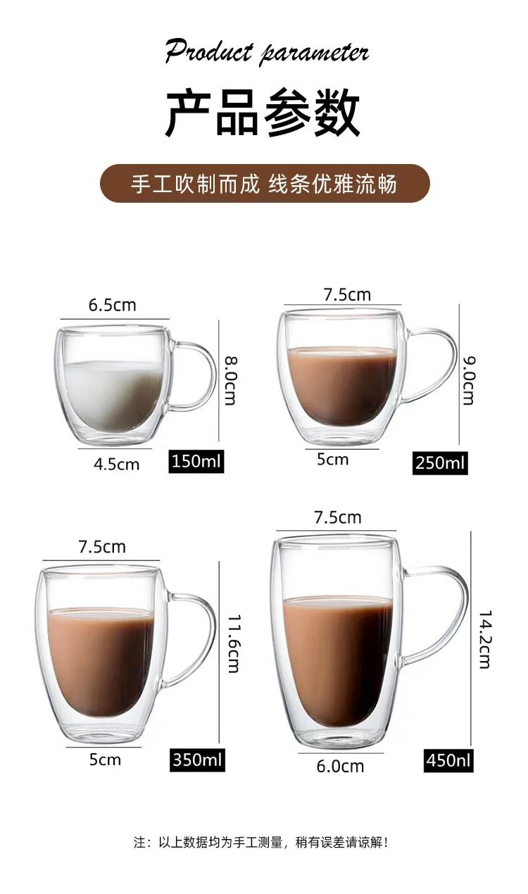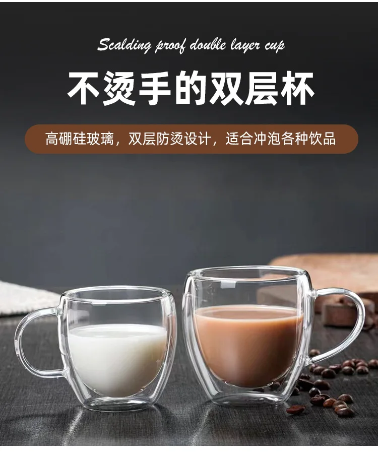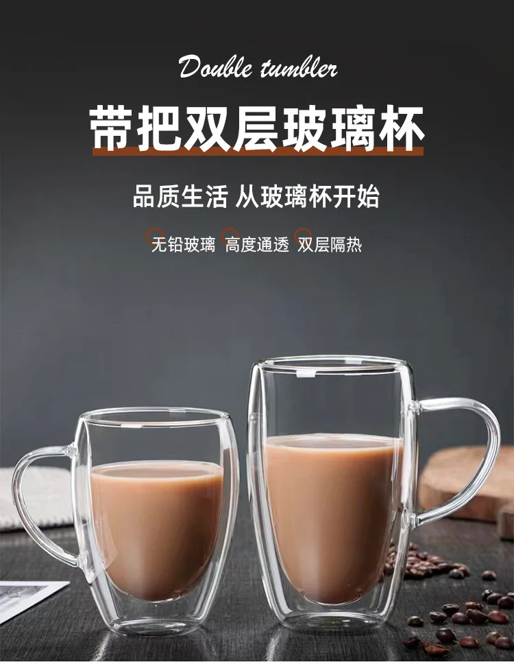 150-450ml Coffee Cup Double Wall Transparent Glass with Handle Double-layer Heat Insulation High Temperature Juice Milk Cup