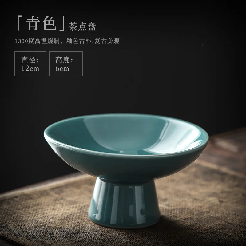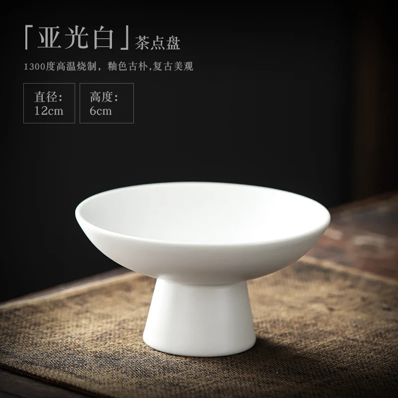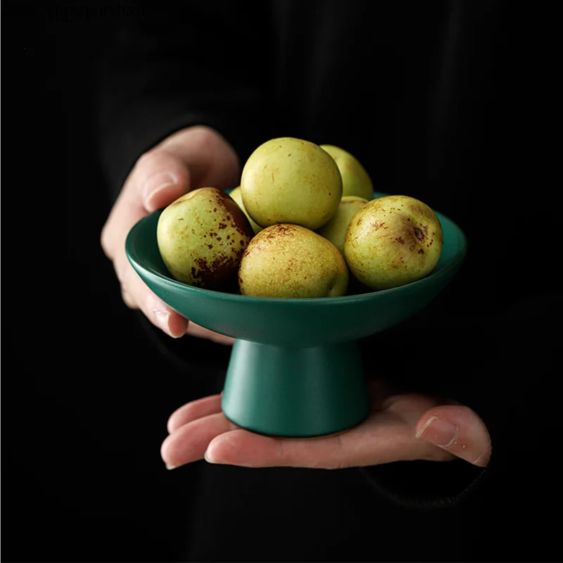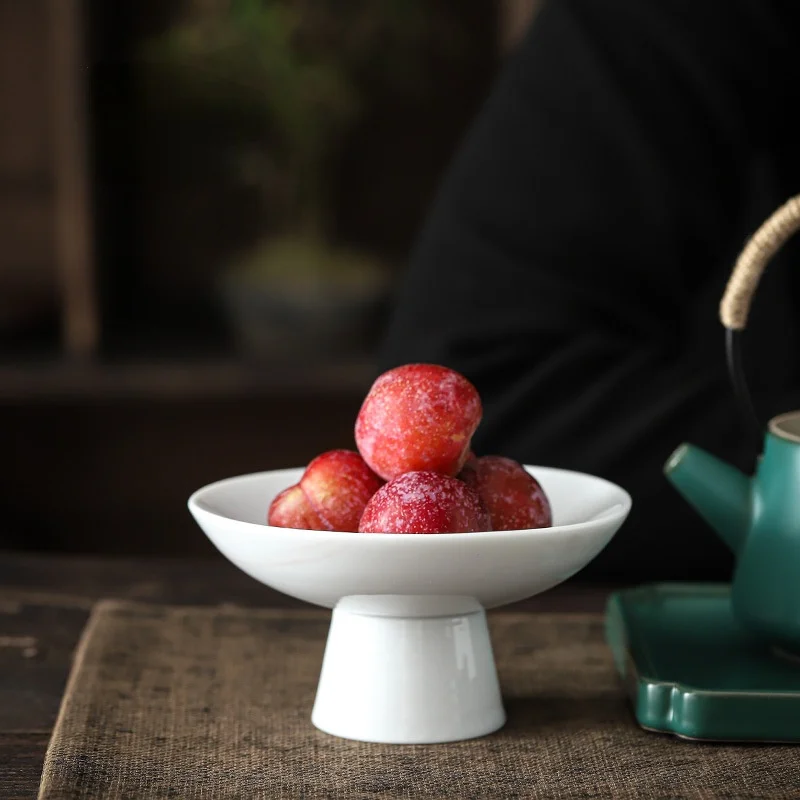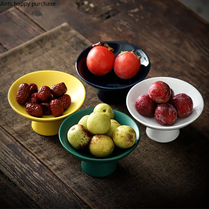 Round Ceramic Plate Small Fruit Plate Bowl Tall Feet Refreshment Tray Dried Fruit Plates Dishes Snack Tray Cake Pan Display Tray
