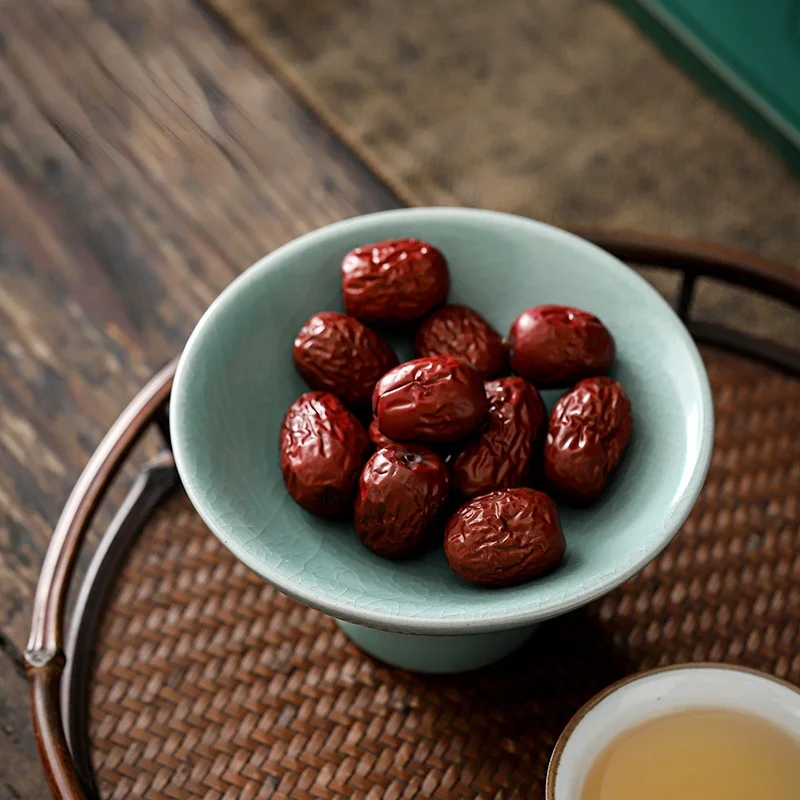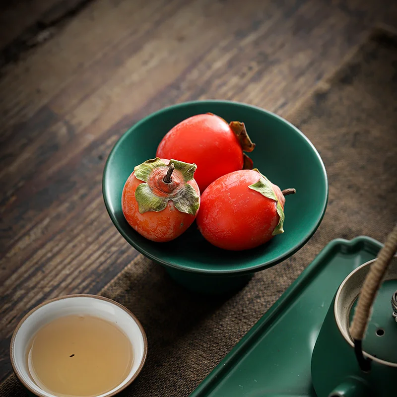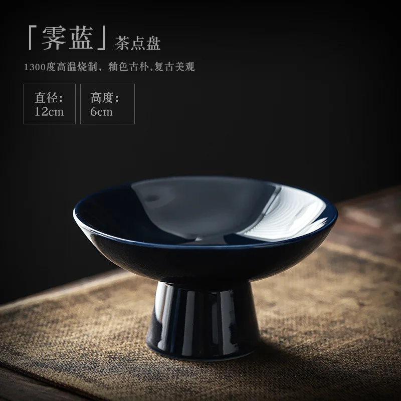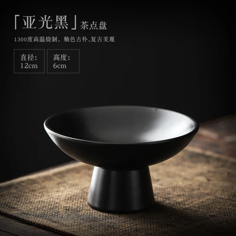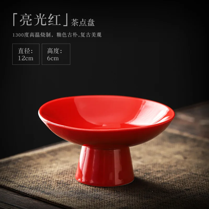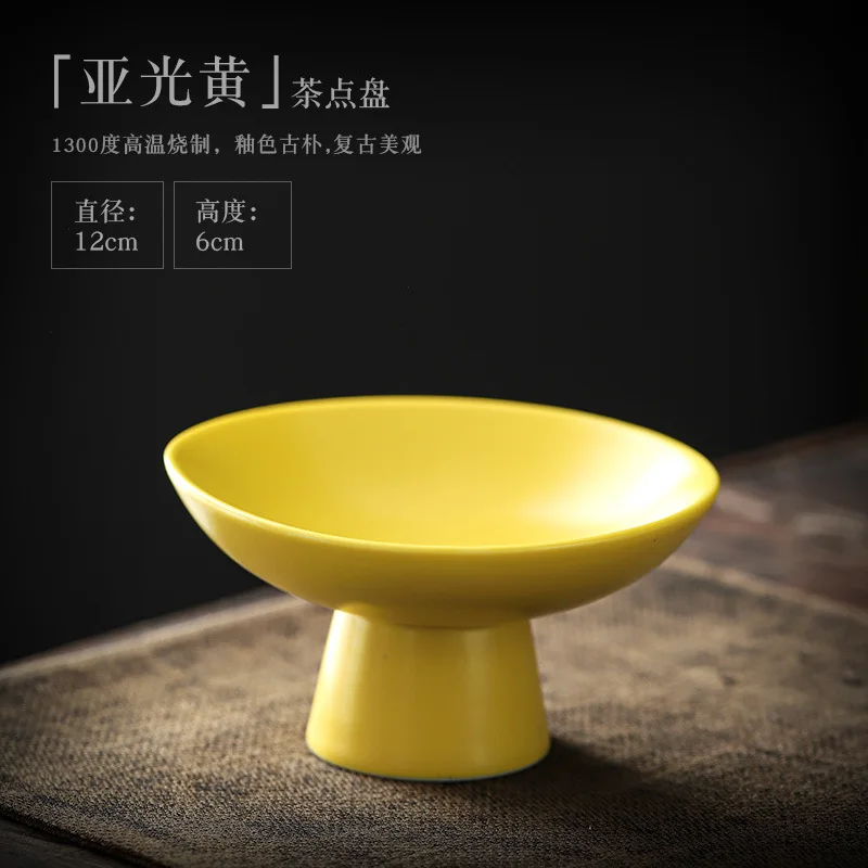 Round Ceramic Plate Small Fruit Plate Bowl Tall Feet Refreshment Tray Dried Fruit Plates Dishes Snack Tray Cake Pan Display Tray